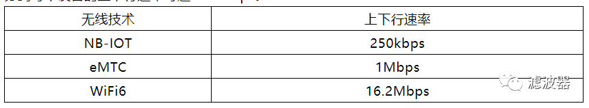 典型的室内小基站天线一般是4T4R,实际速率是1.5Gbps-2Gbps。Wi-Fi6 AP最高可以是8T8R,实际速率至少为3Gbps-4Gbps。所以,单设备的性能Wi-Fi6会优于5G。前面提到,室内Wi-Fi6比5G的单设备覆盖范围差不多相差十倍,这样平均到每个平米、每个人,5G的性能可能不到Wi-Fi6性能的十分之一。国际电信联盟认可的用户体验速率在0.1~1Gbps,而同样常规的2T2R Wi-Fi6终端体验速率可以达到1~1.5Gbps。所以,Wi-Fi6更适合室内高带宽。5G的mMTC场景,预期将使用NB-IOT和eMTC作为大连接的物理层空口技术,NB-IOT总共消耗带宽180KHZ,调制方式为BPSK、QPSK及GMSK,采用划分给GSM或LTE网络的频段部署,理想上下行速率为250kbps。eMTC载波带宽为1.4MHZ,物理层技术与LTE网络一致,部署于LTE网络的频段,理想上下行速率1Mbps。Wi-Fi6使用的OFDMA和TWT技术同样具备物联网场景的功能。在160MHZ带宽条件下,理论上允许74个设备接入,而160M带宽的速率为1200Mbps,平均分到每个设备的上下行速率可达16.2Mbps。