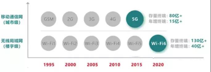 基于Wi-Fi和蜂窝网络这两种技术的终端,其存量数量和新增数量基本上可达到每人一个,这个数量决定了在未来很长的一段时间内,这些终端仍然会广泛存在于大众的生活中。目前,二者都已经发展到五到六代,技术非常成熟。未来,两种技术可能在特定场景会存在互补替代关系,但仍将长期共存。